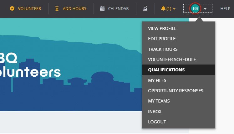 2. Select Qualifications from the dropdown near the circle with your initials.